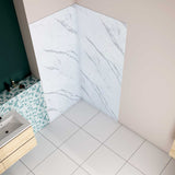 H.210 cm Pannello Doccia ad Angolo Realizzato in Alluminio da 3 mm con Profili Finitura Bianco Alba per Rivestimento Parete Bagno